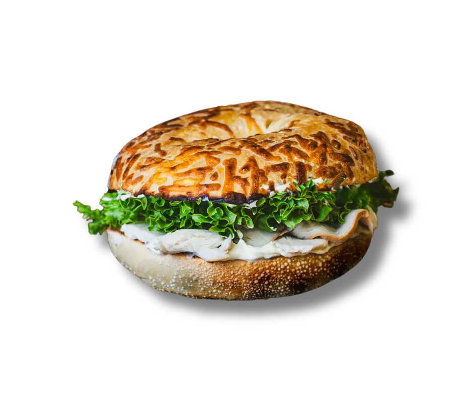 Cold smoked turkey, romaine lettuce, veggie cream cheese, on an asiago bagel